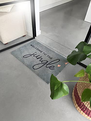 Mad about Mats Jojo - Zerbino per porta della pelle, per esterni, con scritta Welcome to The Jungle, verde scuro, antiscivolo, lavabile, robusto, 50 x 75 cm