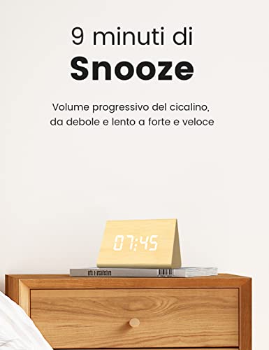 【Funzione Snooze e volume regolabile】fate fatica ad alzarvi dal letto? Attivate la funzione "Snooze", che vi consentirà di dormire per altri 9 minuti;