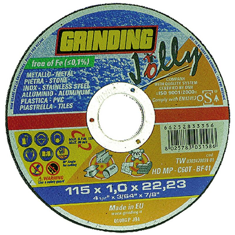 A CENTRO PIANO. PER SMERIGLIATRICI ANGOLARI. IDONEO PER TAGLI DI METALLO, INOX, ALLUMINIO, PIETRA, CERAMICA, PLASTICA. FORO MM 22.ø 230 X 1,9
