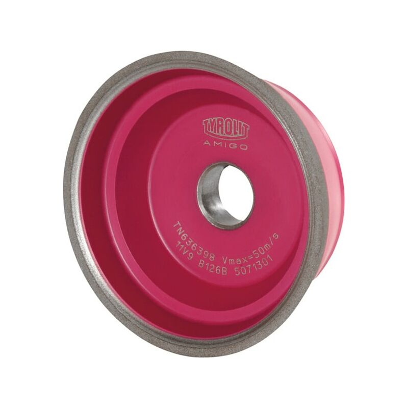 Mole abrasive per utensili con rivestimento abrasivo al CBN in legante di resina sintetica per una lunga durata con capacità di asportazione elevata costante. Il corpo portante con sistema a sandwich in materiale composito di alluminio assicura un'elevata riduzione delle vibrazioni e quindi una rettifica silenziosa con risultati costanti e ottima qualità superficiale. Per una qualità superficiale fine con buona capacità di asportazione. Specifiche tecniche: B126C75B AMIGO-HSS. Uso: Per la rettifica di utensili su tutte le comuni rettificatrici. Per la rettifica di acciai per utensili e da cementazione altamente legati (HSS), stellite. Dati tecnici a secco idoneo Acciaio < 60 HRC m/s idoneo Acciaio < 55 HRC m/s idoneo Acciaio < 1400 N/mm² m/s idoneo a umido max. limitatamente adatto Acciaio < 900 N/mm² m/s limitatamente adatto Al/Mg m/s limitatamente adatto ⌀ Disco D mm 100 Forma 11V9 Lavorazione Rettifica di utensili Attributo del nome del prodotto 100×35×20 Larghezza rivestimento