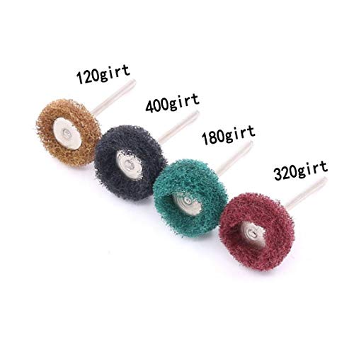 Set di mole abrasive e ruote per lucidatura: ogni grana presenta 10 pezzi, in totale sono 40 pezzi, marrone con grana 120, verde con grana 180, rosso con grana 320, nero con grana 400.