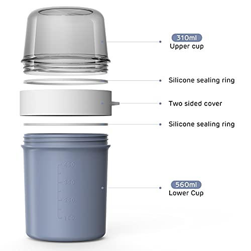 Abree Tazza di Muesli 2 in 1 to-go Tazza da viaggio Muesli Colazione Yogurt Cup con scomparto isolante e coperchio ermetico per lavoro, università, viaggi, picnic-560 ml + 310 ml (Blue)