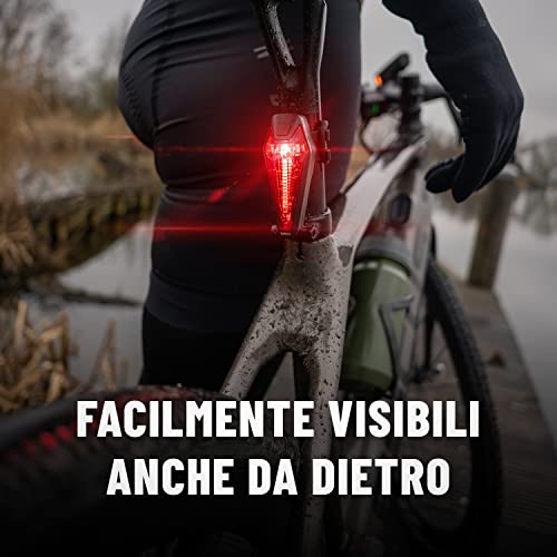 LUMINOSO grazie al faro da 100 Lux e alla sua portata di 200 m - Il set di luci per bicicletta led potenti, composto da luce anteriore e posteriore, illumina la tua corsa notturna senza abbagliare il prossimo