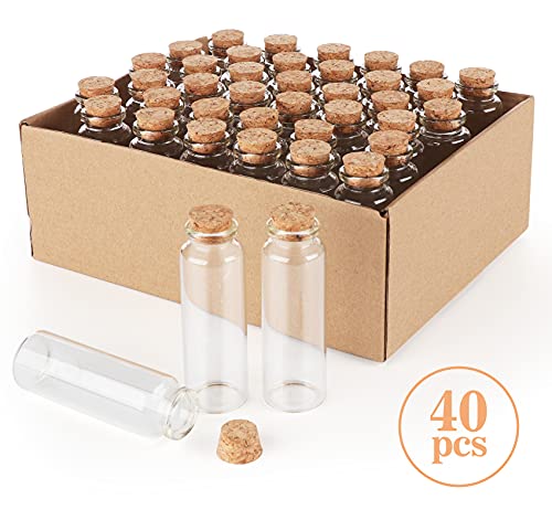 ABSOFINE 40 provette con tappo in sughero e ciondolo regalo, 30 x 90 mm, piccole bottiglie di vetro, trasparenti, provette per bomboniere, fiori, sale, mandorle, spezie