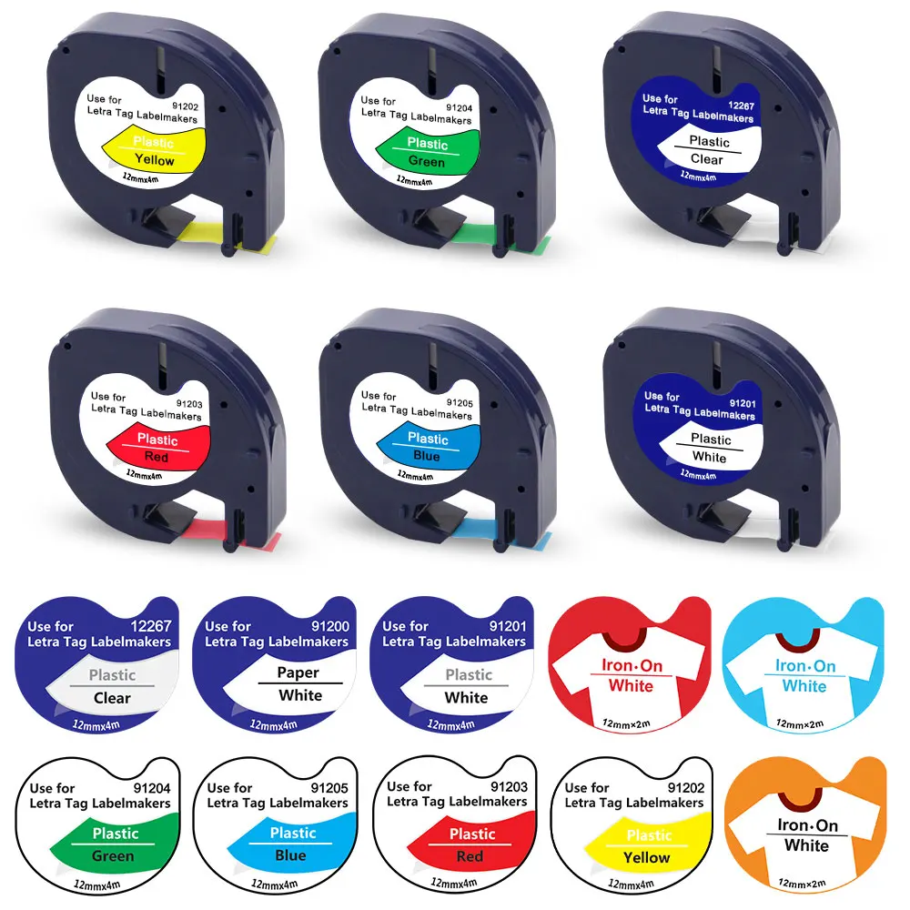 Absonic 12mm 12267 91201 91200 91202 91203 91204 91205 Label Tape for Dymo Letratag Compatible Dymo LT-100H LT-100T Label Maker