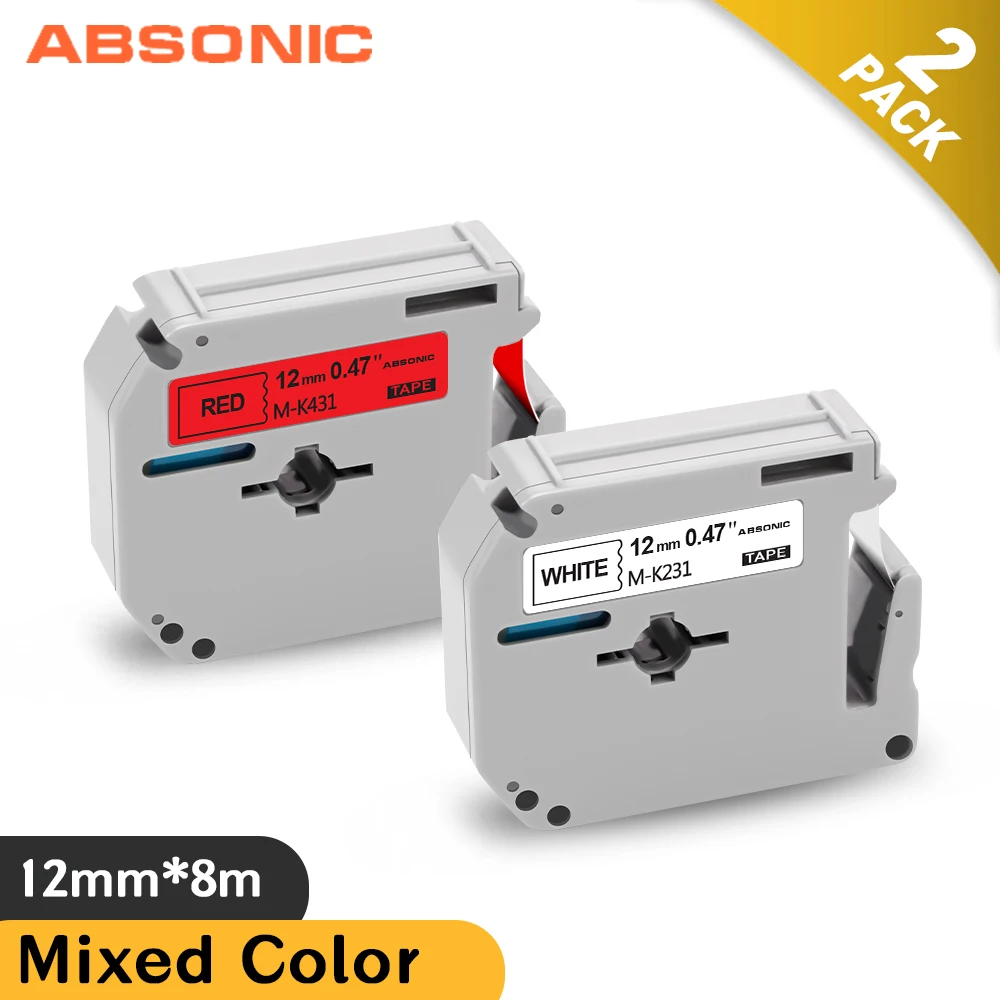 Absonic 2PCS 12mm Tape for Brother MK-231 M-K431 Black on White Red Label Tape MK231 Compatible for Brother P touch Label Maker