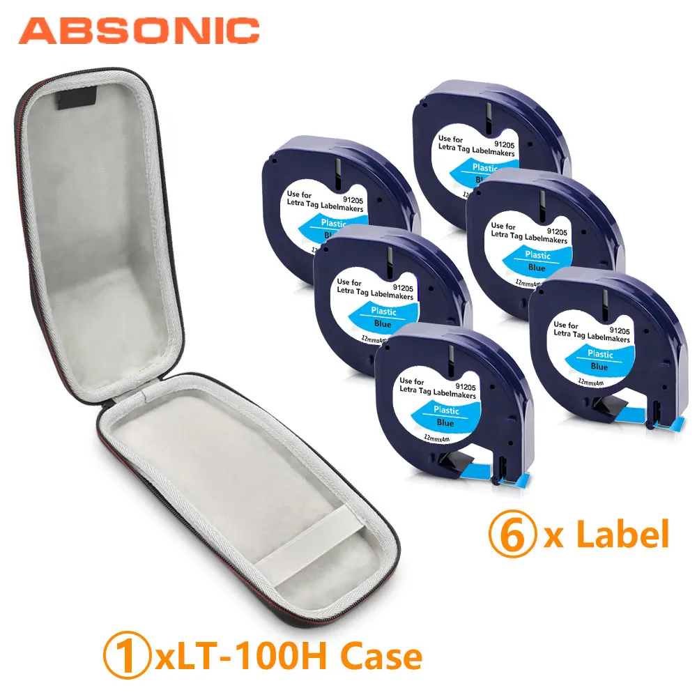 Absonic LT100H Label Maker Case for Dymo Letratag 12mm Label 91205 Black on Blue Tape for Dymo LT Label Maker Protective Box
