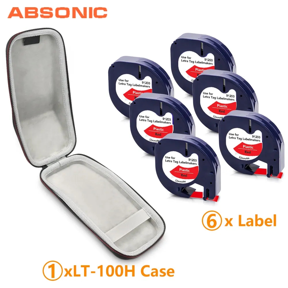 Absonic LT100H Protective Shell for Dymo Letratag 12mm Label 91203 Black on Red Tape for Dymo LT Label Maker Storage Box Case