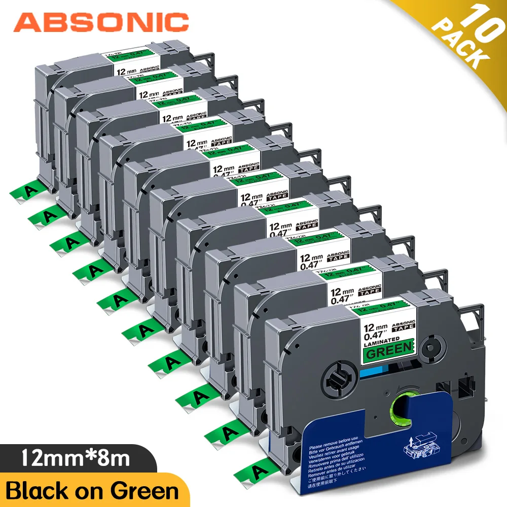 Absonic 10PK 12mm tze tze-731 Laminated Label Tape Black on Green Compatible for Brother p-touch Printer Ribbon Cassette tze731