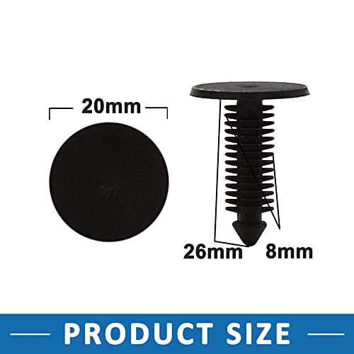 A ABSOPRO Rivetto 8mm Foro Dia Parafango Spinta Fermi Plastica Nero (30Set)