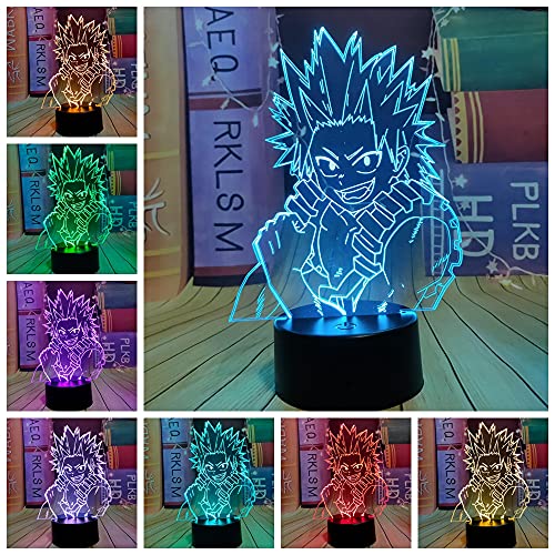 My Hero Academia 3D LED Night Light Kirishima Eijiro USB Luci notturne per bambini Anime Touch Remote Lampada da tavolo Compleanno Regalo di Natale 16 colori Boy Girl Kids Bedroom Decor