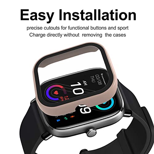 Acadeny Cover protettiva per schermo in vetro temperato + PC Bumper compatibile con Amazfit GTS2 Mini [con scala] antigraffio, protezione per Amazfit GTS2 Mini - Rosa