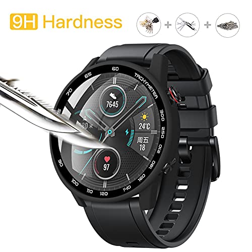 [Design perfetto]: custodia in PC molto resistente + vetro temperato con pellicola protettiva, copre tutta la parte anteriore e i bordi curvi di HONOR MagicWatch 2 46 mm, protegge da graffi, cadute e urti.