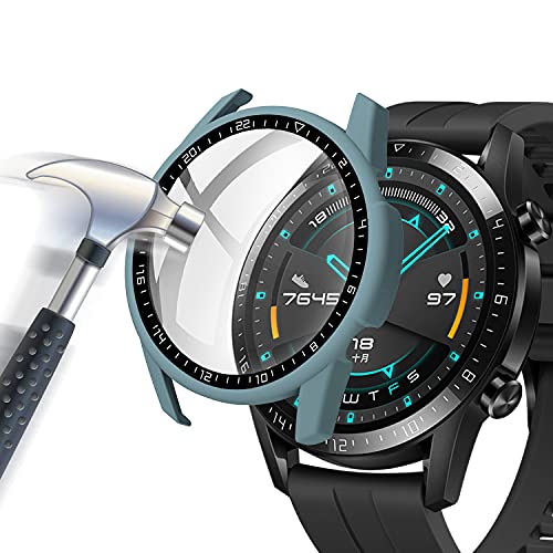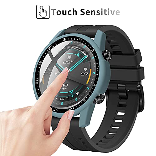 Acadeny Custodia rigida compatibile con Huawei Watch GT2 46mm con pellicola protettiva, 9H Durezza Hart PC Case sottile in vetro temperato per Smart Huawei Watch GT2 46mm, green