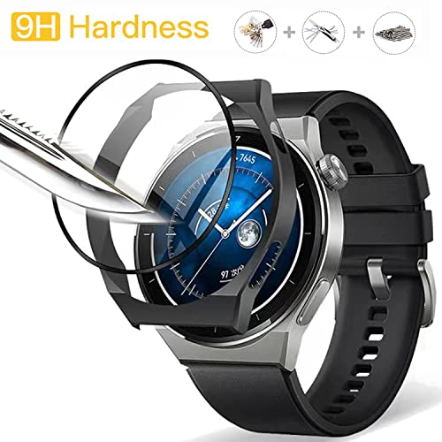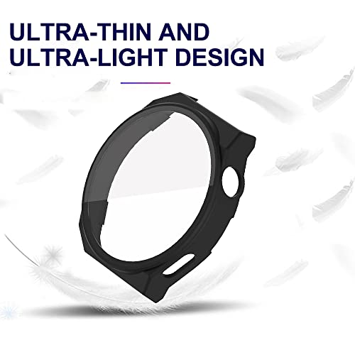 Acadeny 2 pezzi Custodia rigida compatibile con Huawei GT3 pro 46mm con pellicola protettiva,9H Durezza Hart PC Case sottile in vetro temperato per Smart Huawei GT3 pro 46mm, Nero