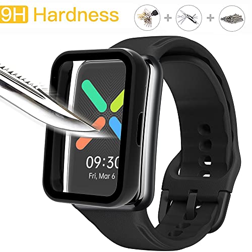 Acadeny 2 pezzi Custodia rigida compatibile con oppo watch free/huawei fit con pellicola protettiva,9H Durezza Hart PC Case sottile in vetro temperato per Smart, Nero+Nero