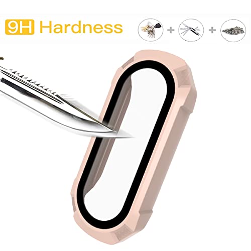 Acadeny 2 pezzi Custodia rigida compatibile con xiaomi band 4/5/6 con pellicola protettiva,9H Durezza Hart PC Case sottile in vetro temperato per Solo i cinturini originali si adattano, rosa