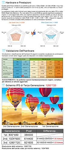 【Car Stereo Sistema】 Android Sistema, Quad Core, Cortex-A7 MP4, Max. 1,3 GHz, 2GB RAM e 32GB ROM, garantire un funzionamento regolare e una risposta più rapida, display da 10.1 pollici ad alta risoluzione 1280 x 720 pixel.