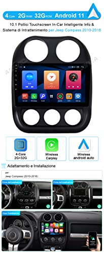 ACAVICA 10.1 Pollici Android 11 Autoradio per Jeep Compass 2010-2016 Touchscreen Tablet Schermo Lettore Multimediale con Wireless Carplay Android Auto Bluetooth FM