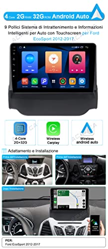 ACAVICA 9 Pollici 2+32GB Autoradio con Wireless Carplay Android Auto per Ford EcoSport 2012-2017 In-dash Car Radio Navigazione GPS Stereo Bluetooth WiFi USB Comandi al Volante