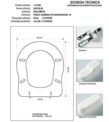 ACB/COLBAM Copriwater in Legno Rivestito di Poliestere per Dolomite ANTALIA Bianco Cerniera Oro-Sedile-ASSE WC