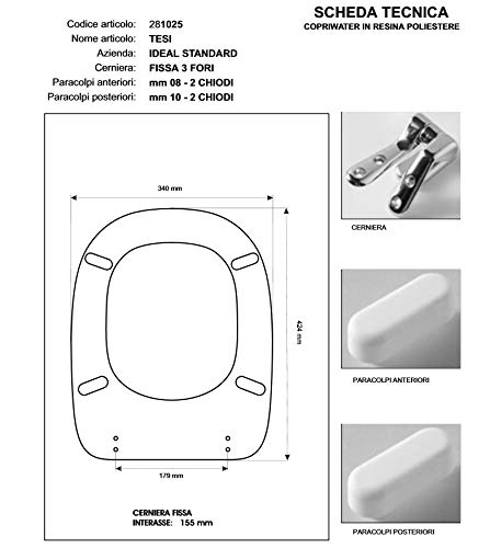 ACB/COLBAM Copriwater in Legno Rivestito di Poliestere per Ideal Standard TESI BIANCO I.S. Cerniera Cromo-Sedile-Asse Wc