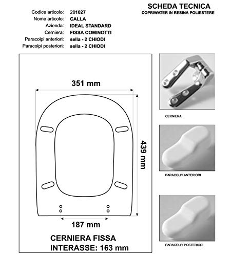 ACB/COLBAM Copriwater in Legno Rivestito di Poliestere per Ideal Standard CALLA BIANCO I.S. Cerniera Cromo-Sedile-Asse Wc