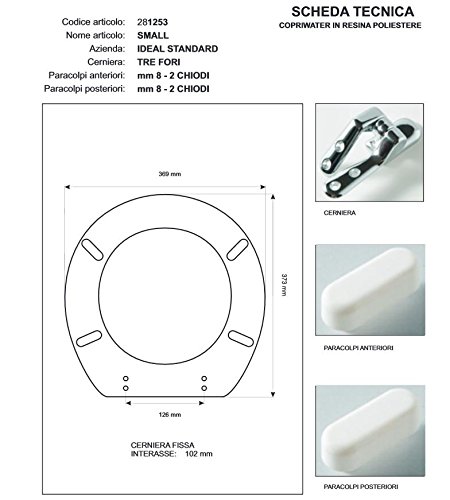 ACB/COLBAM Copriwater in Legno Rivestito di Poliestere per Ideal Standard Small Bianco Euro Cerniera Rallentata Soft Close Cromo-Sedile-ASSE WC