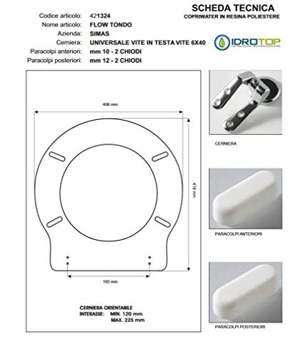 ACB/COLBAM Copriwater in Legno Rivestito di Poliestere per Simas Flow Tondo Bianco Cerniera Cromo-Sedile-ASSE WC