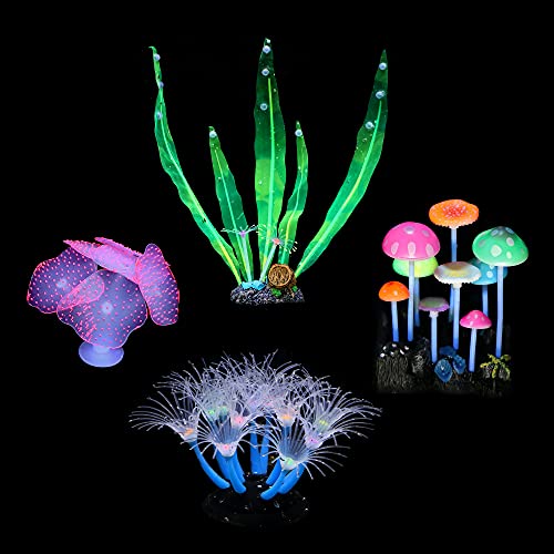 Effetto luminoso: questi ornamenti per acquario in silicone possono essere illuminati sotto la luce e in caso di diversità del colore della luce possono creare diversi effetti visivi. Si consiglia di utilizzare una luce blu viola e bianca per creare un bel e misterioso mondo subacqueo. Non si illuminano al buio!