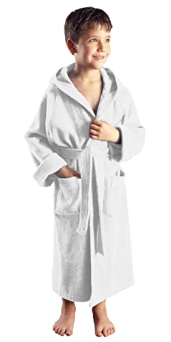 Arus Accappatoio per Bambino e Bambina, 100% Cotone Spugna, con Cappuccio, Ampia Scelta di Colori, Bianco, 152