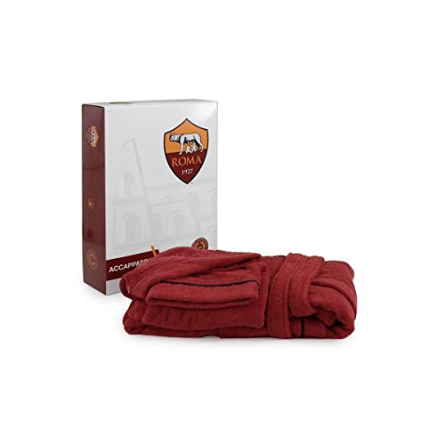 A.S. ROMA Accappatoio Bambino/Ragazzo Ufficiale Spugna c/Cappuccio - Rosso Q088 4-6 Anni