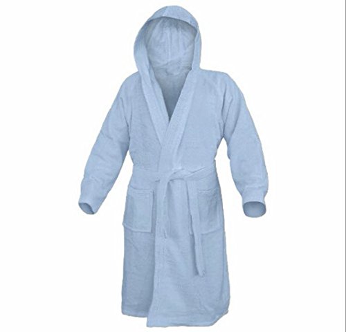 Accappatoio con Cappuccio in Spugna 100% Cotone Tinta Unita Uomo Donna Unisex Mastro Bianco (XL, Celeste)