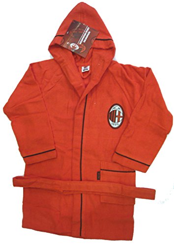 Accappatoio milan con cappuccio anni 12 / 14 bambino ragazzo rosso nero 100% micro spugna puro cotone