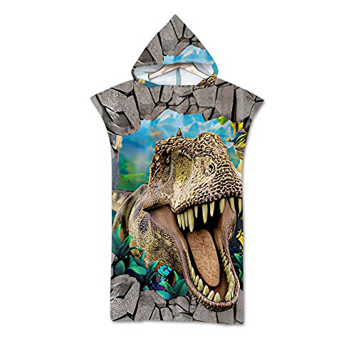 Accappatoio Poncho con Cappuccio Telo Mare, DOTBUY Microfibra Asciugatura Rapida Assorbente Asciugamano Cambiarsi Telo da Bagno per Spiaggia, Nuoto, Surf Impronta Animale (75 * 110cm,Dinosauro)