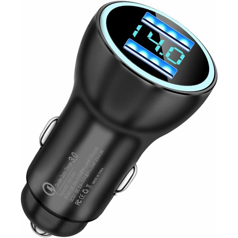 Dual QC3.0 USB Fast Charge - -Questo accendisigari con due porte USB QC3.0, la potenza totale raggiunge i 36 W. L'adattatore per auto USB adotta la tecnologia di ricarica rapida, che può garantire una ricarica ad alta velocità. L'adattatore per accendisigari per auto può caricare due dispositivi contemporaneamente alla velocità QC3.0 e caricare dallo 0 al 55% in 35 minuti. Il caricabatterie per auto QC3.0 fornisce una ricarica 4 volte più veloce. [LED Voltage Display] -Questo caricabatterie per auto con display a LED, la tensione dell'auto viene visualizzata sullo schermo.visualizzazione della tensione tramite il LED morbido e l'auto l'impianto elettrico è monitorato, quindi puoi conoscere lo stato della vettura in ogni momento. Quando la tensione dell'auto è troppo bassa/alta, ti avviserà e può anche aiutarti a trovare facilmente la porta di ricarica durante la guida notturna. [All-Metal Shell] -Questo caricabatterie per auto è completo guscio in metallo, il suo guscio in lega di