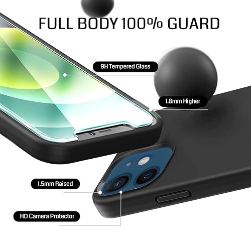 Access4us Pack Essentiel 3 in 1 per iPhone 12 Mini: custodia in silicone + 1 protezione per fotocamera + 1 protezione schermo in vetro temperato ● protezione completa (Nero)