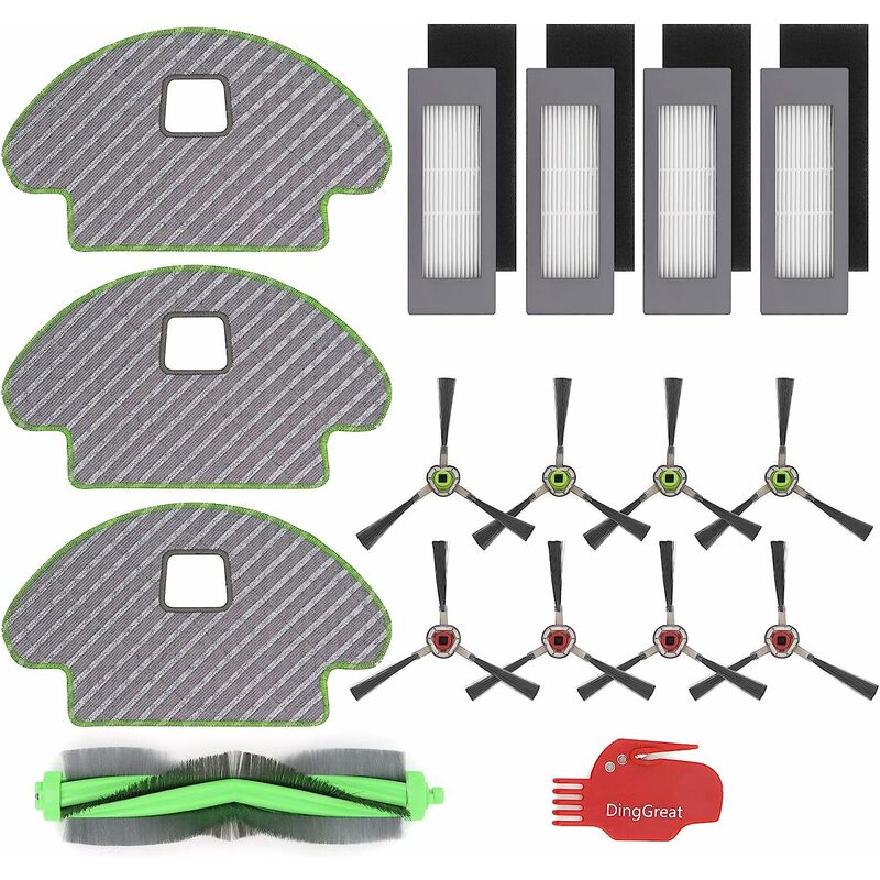 Parti di ricambio compatibili per l'aspirapolvere robot iRobot Roomba Combo113 R113840. (Confermare il modello del robot prima dell'acquisto). La spazzola laterale arriva in profondità negli angoli e nei bordi per rimuovere più sporco, polvere e detriti. I filtri mantengono le prestazioni di pulizia dell'aspirapolvere e allo stesso tempo riducono la penetrazione di polvere, polline e altri allergeni nell'aria che respiri. Il panno per mop in microfibra ha un forte assorbimento d'acqua, può essere facilmente e accuratamente rimosso dallo sporco su pavimenti duri. Suggerimenti caldi: se le spazzole laterali sono piegate a causa della spedizione, recuperale semplicemente immergendole in acqua tiepida per diversi minuti. Non influirà sulla qualità e sulle prestazioni. La confezione include: 1 spazzola principale, 4 filtri HEPA, 3 panni in microfibra, 8 spazzole laterali, 1 spazzola per la pulizia.