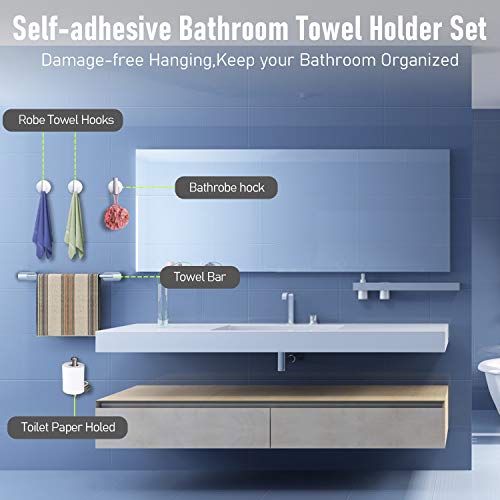 O'woda Set di 5 Accessori da Bagno, 304 Acciaio Inossidabile, Bagno Portasciugamani 40 cm + Porta Carta Igienica + Gancio per Accappatoio + 2 Ganci Adesivi, Senza Foratura con Adesivo (Argento)