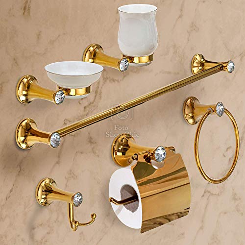 Shop Chic - Set Accessori Bagno Oro Barocco con Swarovski Completo 6 Pezzi Dorati Porta Asciugamano Sapone da Parete Alta qualità Pleiadi