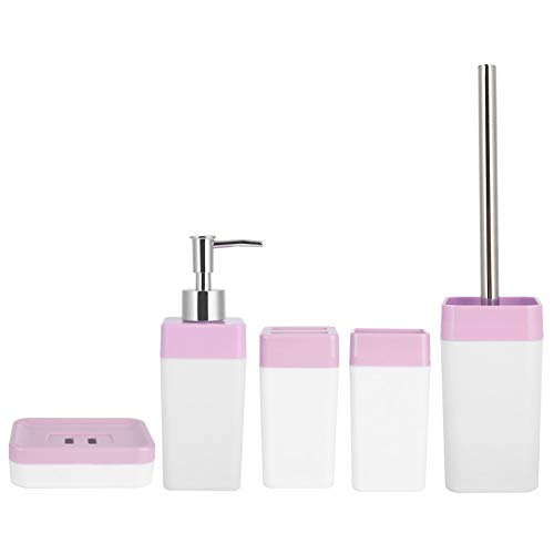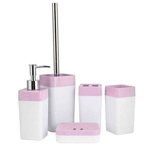 [Set da bagno da 5 pezzi]: set da bagno da 5 pezzi, comprensivo di distributore di sapone, portasapone, portaspazzolino, sciacquone, scopino.