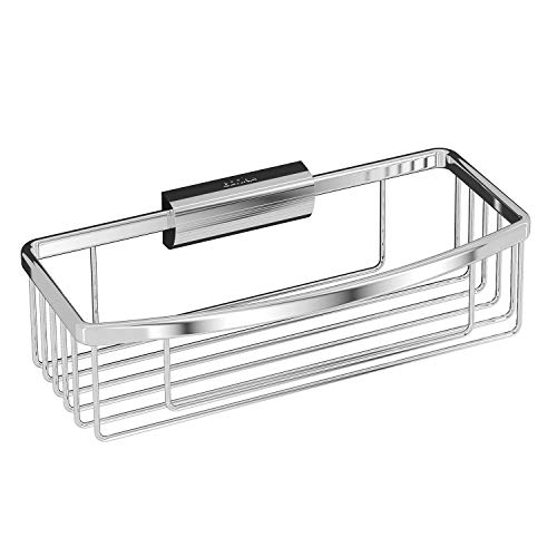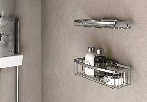 INDA - Accessori Bagno, Cestino Portaoggetti da Doccia Rettangolare Sganciabile in Ottone Cromato, Dimensioni 26 x 13 x 8 cm