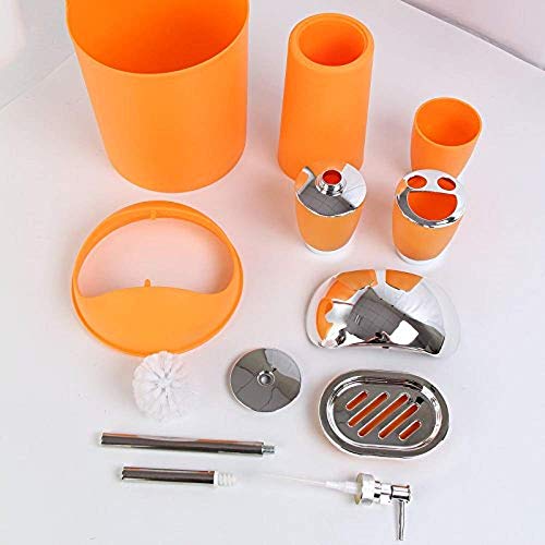 Set di accessori da bagno da 6 pezzi, con bicchiere, porta spazzolini, cestino, portasapone, dispenser di sapone, colore arancione