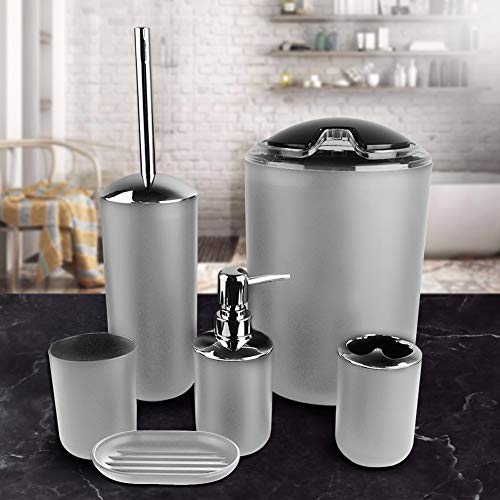 Set di Accessori da Bagno, 6 Pezzi, Dispenser di Sapone, Portasapone, Portaspazzolino, Tazza di Risciacquo, Porta Scopino per WC, Pattumiera, Set da Bagno (Grigio)