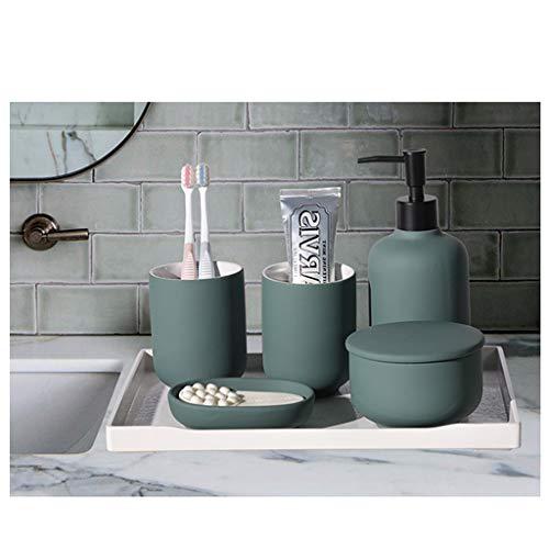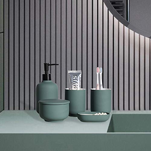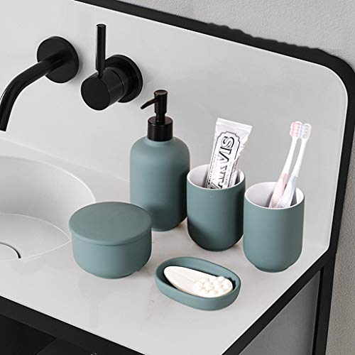 QLTY Set di Accessori da Bagno 5 Pezzi,Set di Lavaggio Semplice e alla Moda,Set Bagno,Incluso distributore di Sapone,Porta spazzolino da Denti,portasapone,Barattolo (Rosa/Blu)