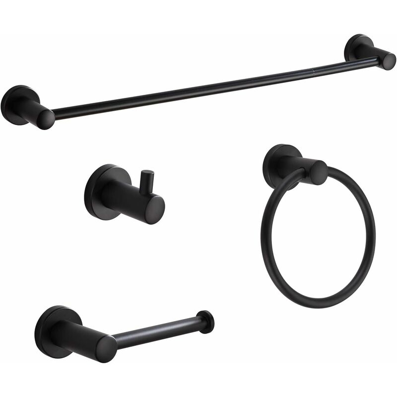Il kit di accessori per il bagno nera comprende 1 barretta da barra a barre da 61 cm (lunghezza totale 45,7 cm con tubo da 20,3 cm), 1 anello asciugamano nero, 1 supporto per carta igienica e 1 gancio da asciugamani. I nostri binari da bagno sono sia economici che compatti. Un set completo può soddisfare tutte le esigenze della tua vita quotidiana. Asciugamani da bagno nero opaco che lavora senza sforzo i confini dello stile, aggiungendo un alto livello di stile moderno a qualsiasi tipo di interno. I toni morbidi e terrosi di opaco nero creano un aspetto modesto. Stile minimalista, belle linee pulite, danno il tuo bagno un aspetto elegante. Il portasciugamani può resistere alla prova del tempo perché il suo appello senza tempo non sarà mai demolito. Dotato di tutti gli accessori di montaggio necessari, viti in acciaio inox di alta qualità e caviglie di alta qualità, queste viti sono nascoste, l'aspetto è più pulito e più attraente. C'è una varietà di finiture disponibili e è possibile
