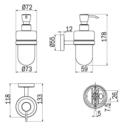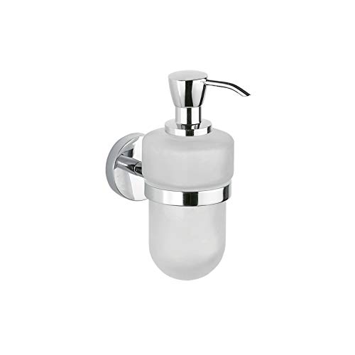 INDA - Accessori Bagno, Serie Forum, Spandisapone da Parete in Ottone Cromato e Contenitore in Vetro Satinato, Dimensioni 7,3 x 13,3 x 17,8 cm