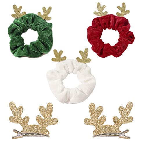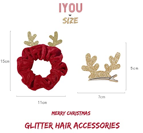 IYOU Accessori per capelli di Natale Velluto Scrunchies Renna Antler capelli clip Elastico Ponytail Holder Bands per le donne e le ragazze per la festa di Natale (confezione da 5)
