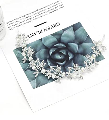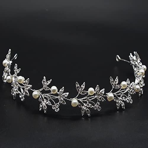 Accessori per Capelli da Sposa,Perla Nuziale Cerchietti Argento-Foglia Cristallo Cerchietti Strass Nozze Copricapo Accessori per Capelli da Sposa