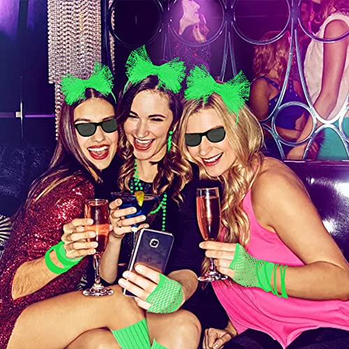 Accessori per costumi anni '80, stile anni '80, set e kit per donne e ragazze, scaldamuscoli al neon collane, braccialetti a rete, guanti in pizzo, archetto e orecchini (verde)
